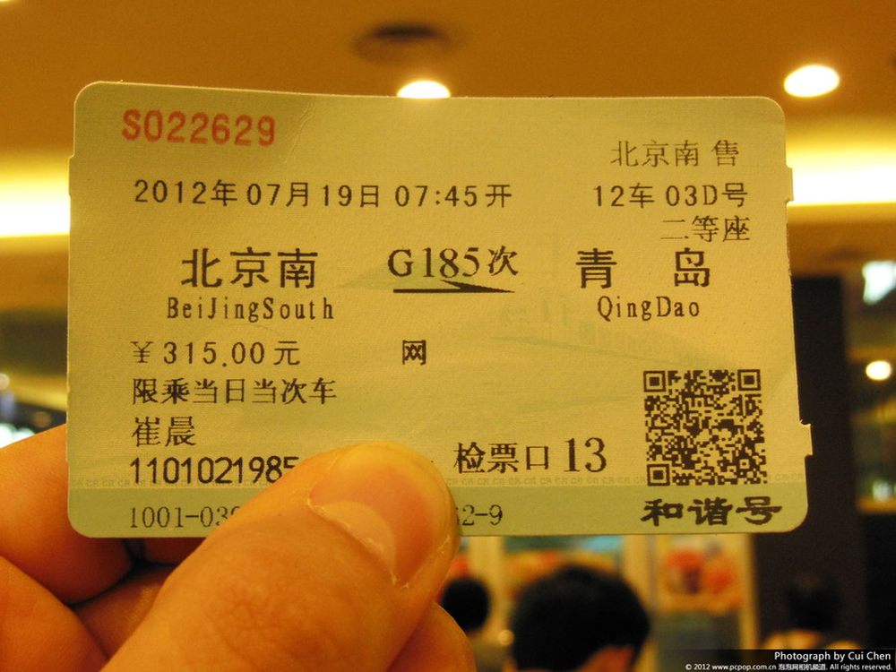 目前去往长岛没有直飞的航班,大家需要在蓬莱乘大船前往岛上。但从北京到蓬莱也没有直达飞机或火车。最终我选择了在北京乘坐火车到青岛,然后从青岛做长途车到蓬莱,最后乘船上到长岛。看看这趟旅程是不是够漫长的,当然更郁闷的还在后面。因为现在是旅游旺季,从北京到青岛的火车票十分难买,最终被我抢到了一张早上7点多发车的北京到青岛G185高铁车票,虽然要早起赶车,但至少可以完成我的海边度假心愿了。3/35