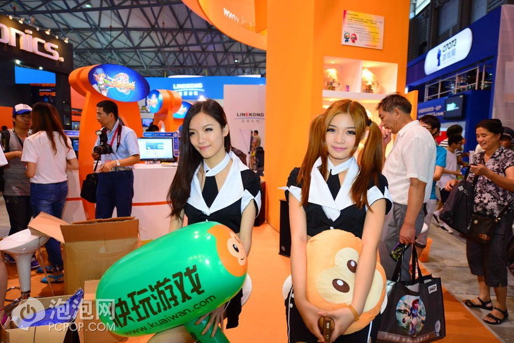 每家展台的showgirl争奇斗艳,就连道具都各不相同,有的是COSPLAY有的是游戏周边。7/28