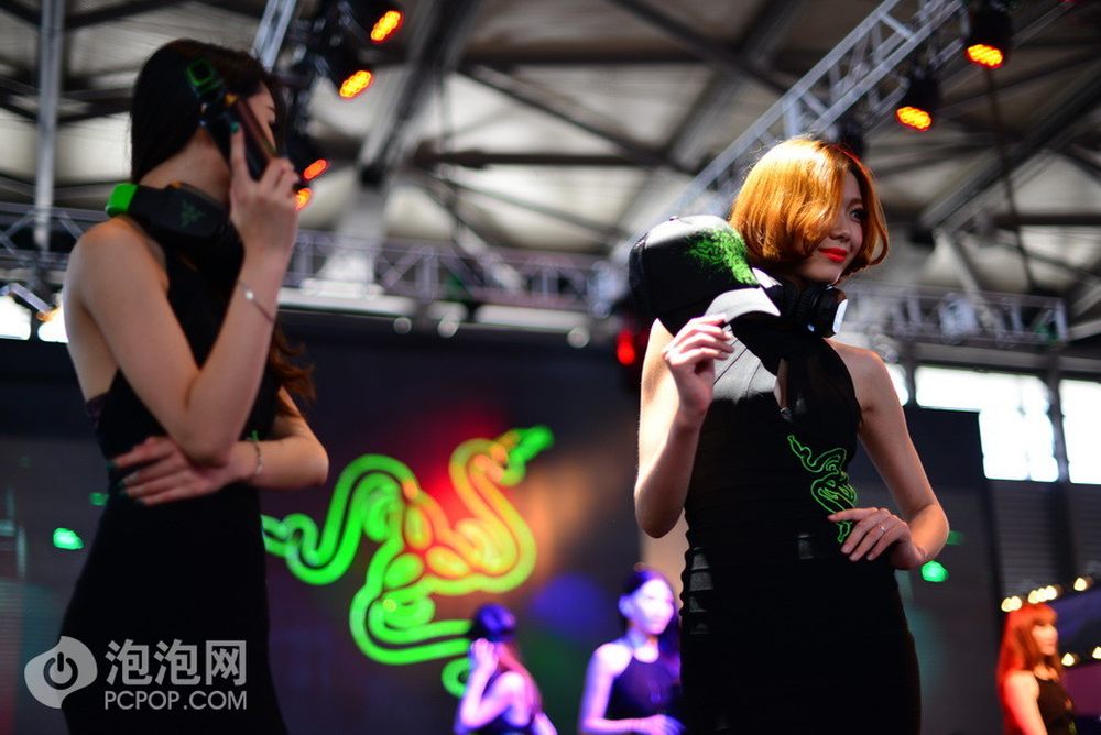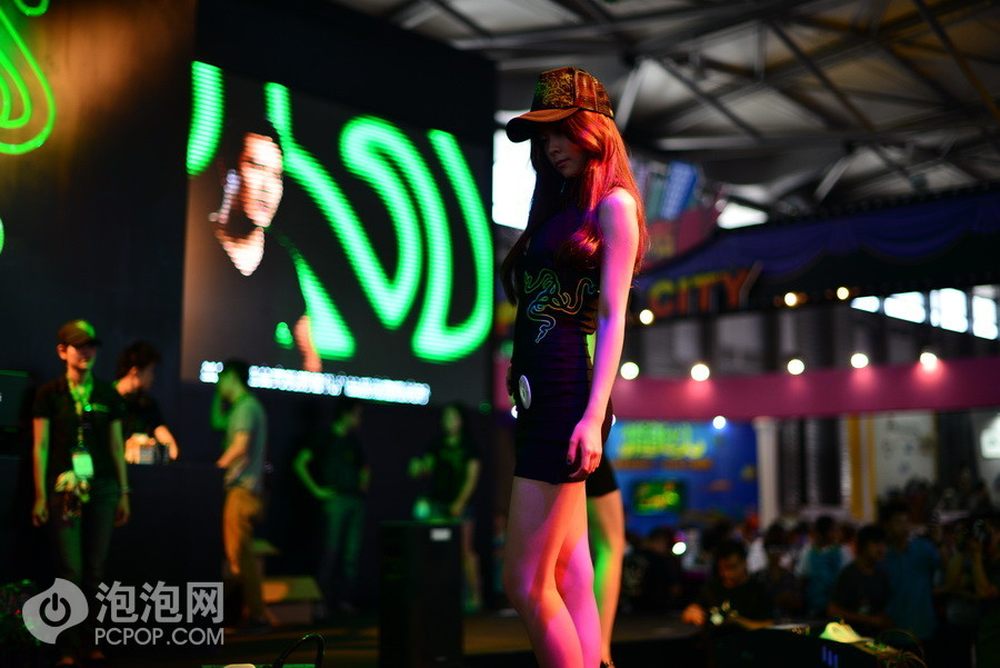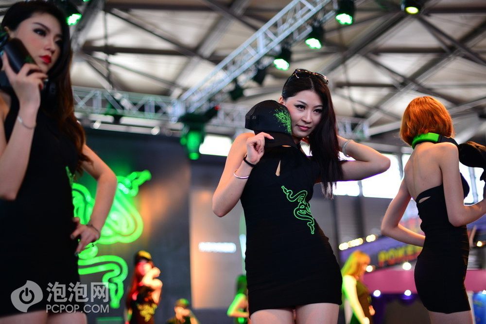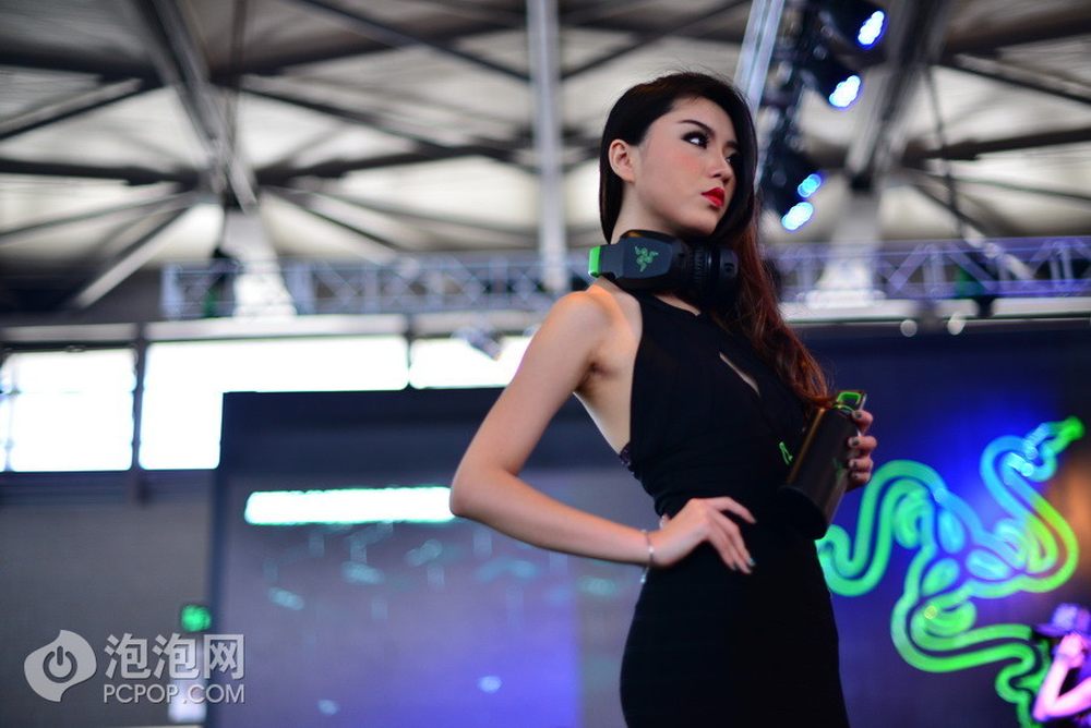 雷蛇展台另一位气质极佳的showgirl,不一样的style让她更能在众多佳丽中吸引眼球。她手拿的是雷蛇的周边,帽子和游戏耳麦。28/28