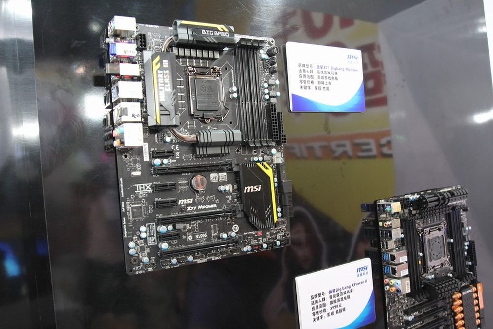 泡泡网主板频道7月30日 一年一度的ChinaJoy游戏展中,业界领先的板卡厂商微星携自家产品震撼登场,军规板卡强势出击,而在微星展台中我们看到了最新、最强的军规显卡、主板,其中包括微星最引以为傲的BigBang高端系列产品。2/10