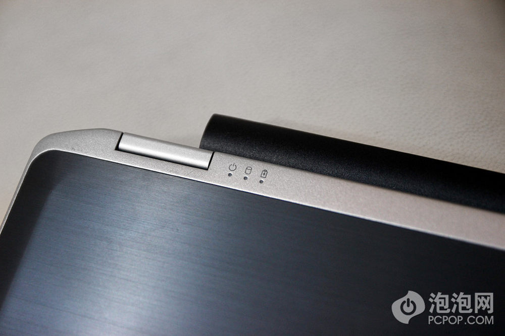 戴尔Latitude E6330机身状态指示灯设计在了机身A面左侧转轴右边,即使在电脑完全闭合状态下也能第一时间看到。4/22
