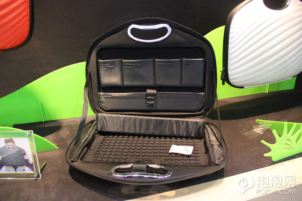 本次展会吸引到了黑贝壳等笔记本配件厂商参展。正如其名,其产品具有贝壳一般的外观,这款专为苹果MacBook Pro设计的电脑包也是如此,另外这款产品的拉链经过特殊的设计,具有防水的功能。3/22