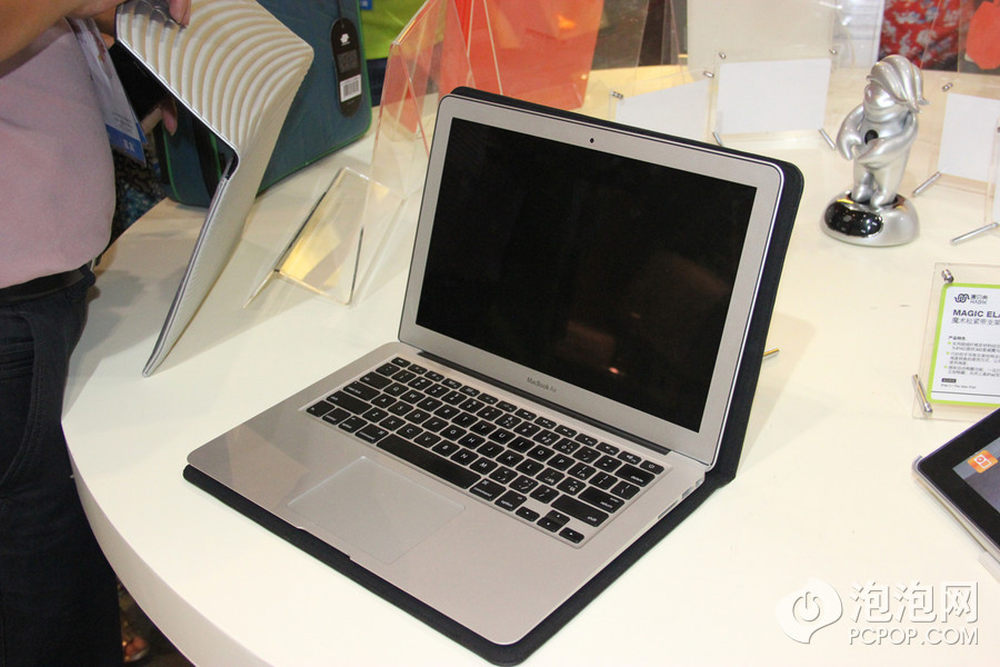 这货是为MacBook Air设计的皮质外壳,想知道它是怎么吸附在MBA上的吗?笔者仔细研究了一下才发现是通过上下四个吸盘吸附的,笔者顿时被雷倒了!刚要拍细节就被工作人员制止了,原因不解释,你懂得!7/22
