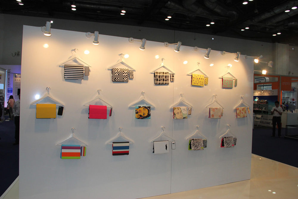 最后再给大家看一个比较有创意的展台,没有打大模、甚至没有工作人员,但每一个路过的人只要手里有相机都不忘拍上一张,也许每一个iPad壳单拿出来都不会吸引我,但如此摆设却大大的吸引了我的眼球。