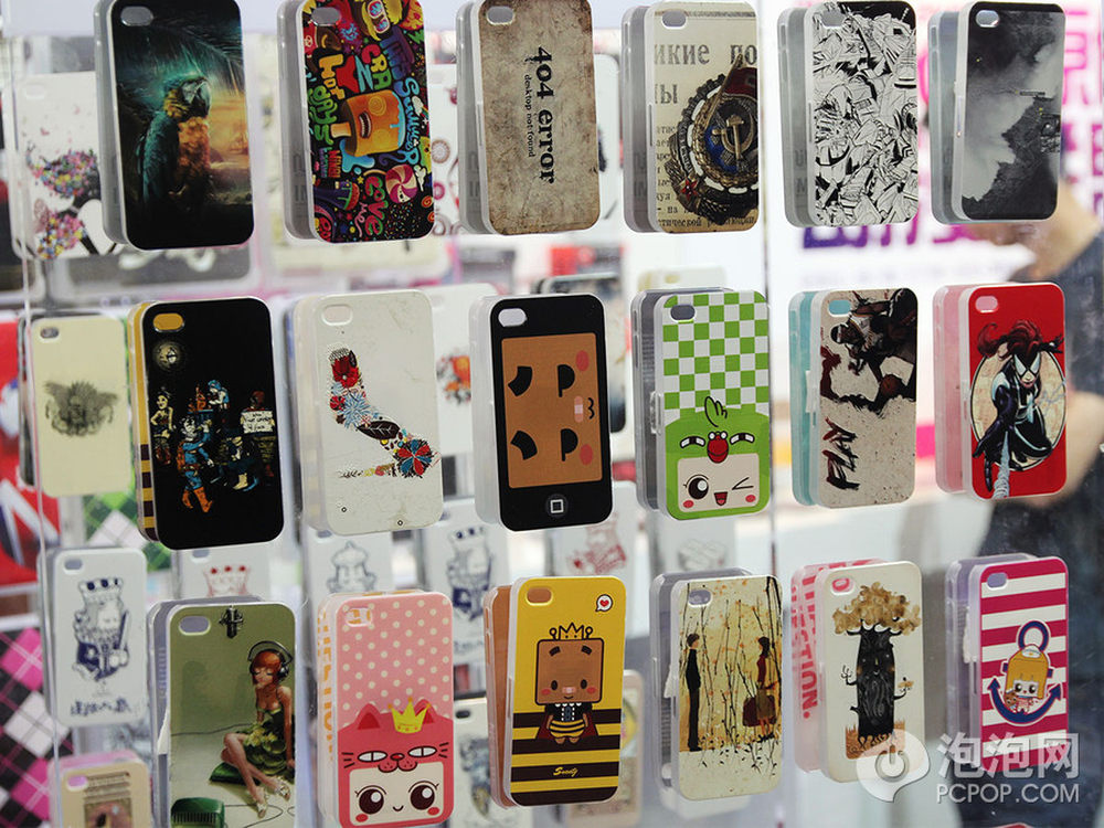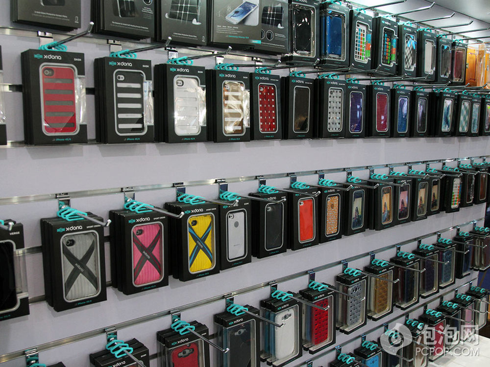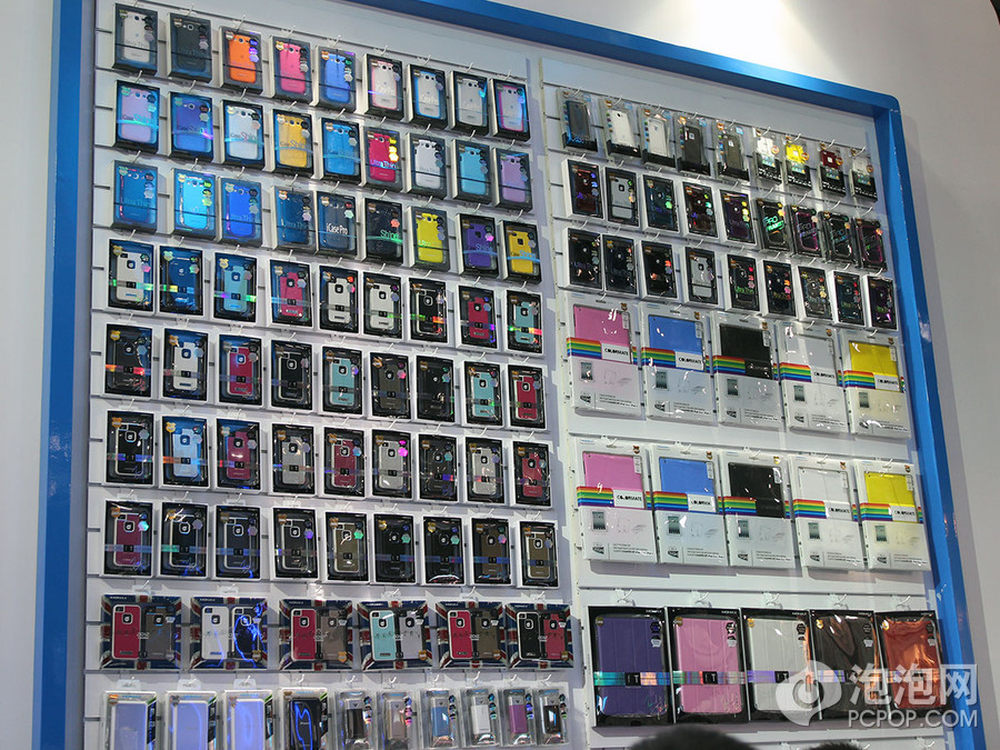 像这种保护壳展示的墙面在此次大会上随处可见,从这里也可以发现苹果配件市场在目前是十分火爆的。24/38