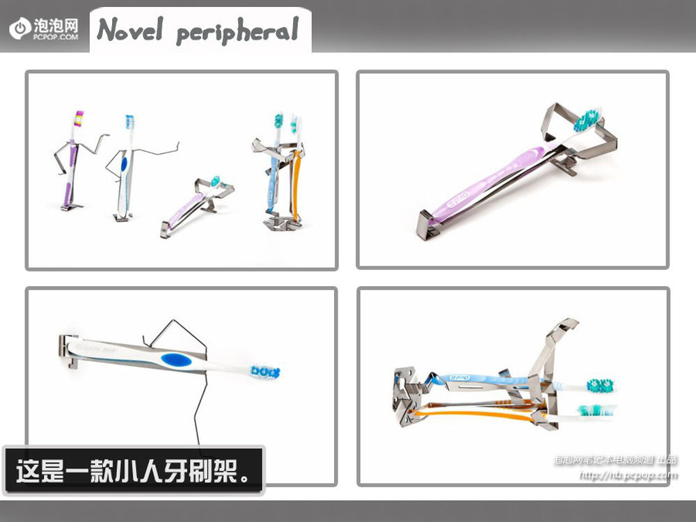 这款由不锈钢制成的牙刷支架,钢片厚度仅为1毫米。它不仅可以让牙刷免于浸在杯中保持干燥,而且还可以摆出各种姿势的小人造型,给生活添点小乐趣。(图片来源于:专利之家)11/14