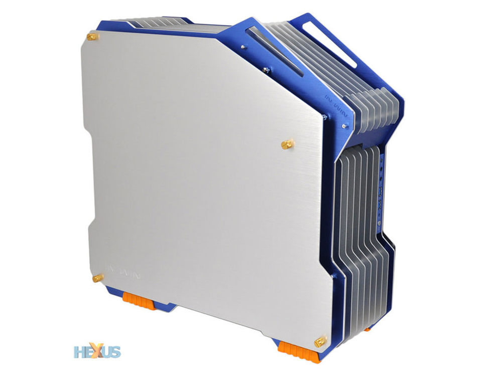 在今年的台北电脑展上,In win迎广推出了一款非常个性的全铝机箱——“H-Frame”。理论上是还能称得上是机箱,实际上,这是由11片铝合金金属板组成的一个机箱的样子,当然,你也可以把它称为大“散热片”机箱。3/17