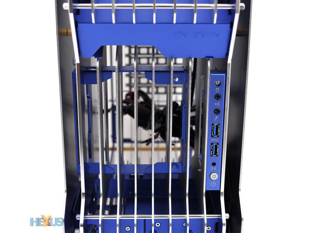机箱的I/O区位于所谓的“机箱面板”处,配有两个USB3.0,一组音频端口和常规电源启动、重启按键。7/17