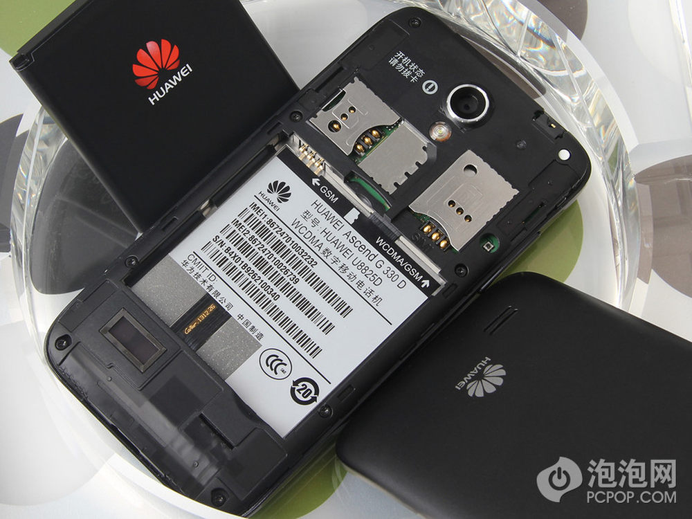 华为G330D采用1500mAh电池,双SIM卡设计,支持一枚GSM的2G卡和一枚WCDMA/GSM的3G卡,也就是说,可以使用一张移动2G卡和一张联通3G卡。12/13