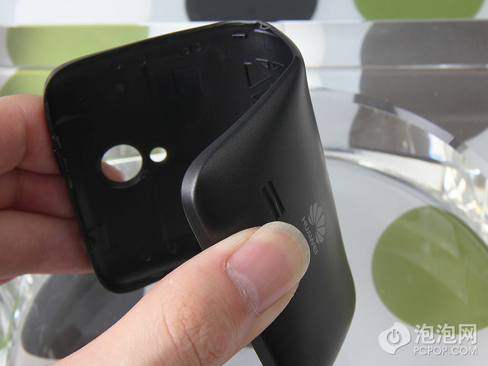 华为G330D后盖采用韧性塑料,可弯折的设计(小心脱手弹飞)。