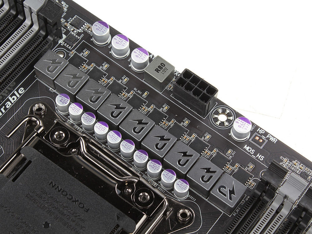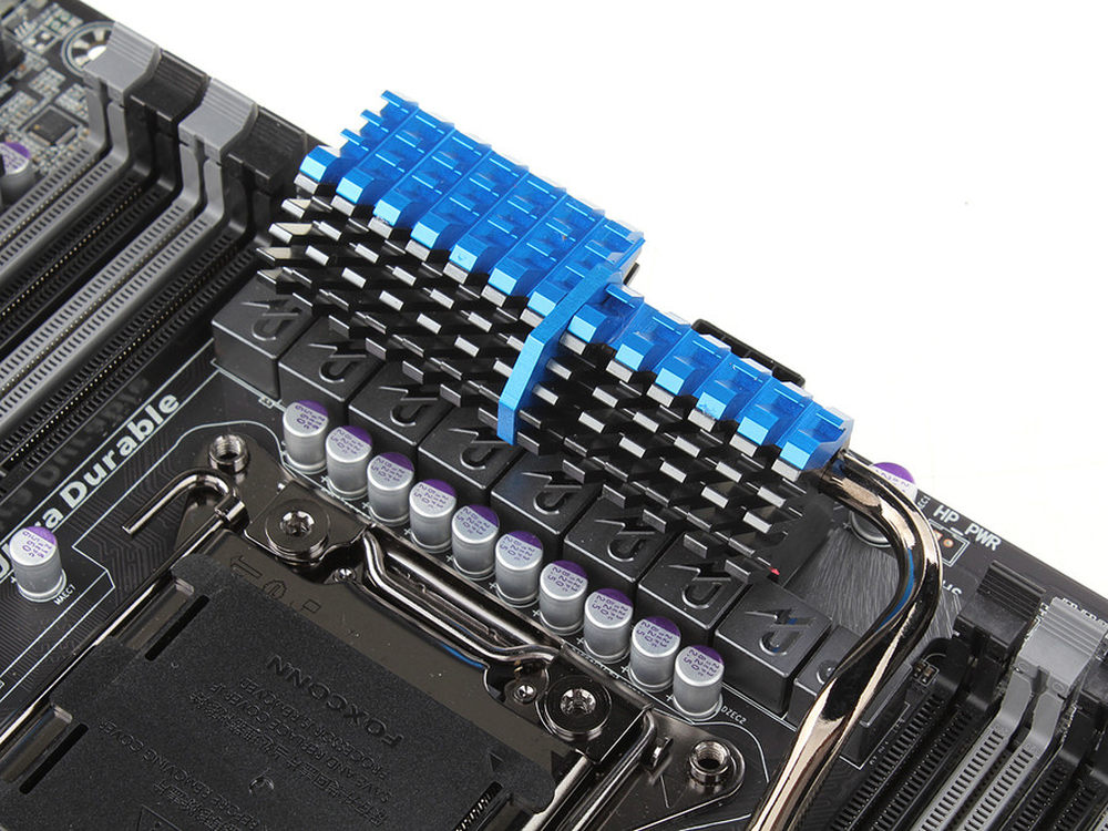 刚刚看到这个部分的时候,似乎让人有点惊讶,乍看上去为CPU供电的相数只有9相,对于SandyBridge-Ez这样的处理器来说可不算多。这也并非技嘉的一贯风格,难道散热片下还藏着什么秘密?5/15