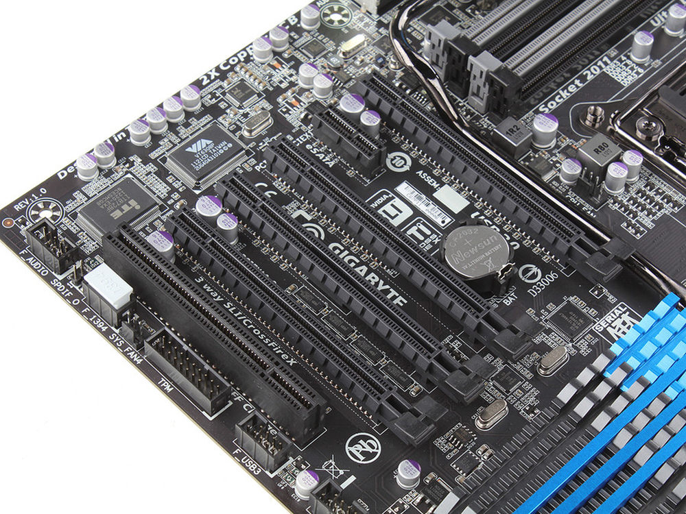 技嘉X79S-UP5-WiFi提供了4条PCI-E插槽,其中3条可以安装独立显卡,最多支持3路CF/SLI。8/15