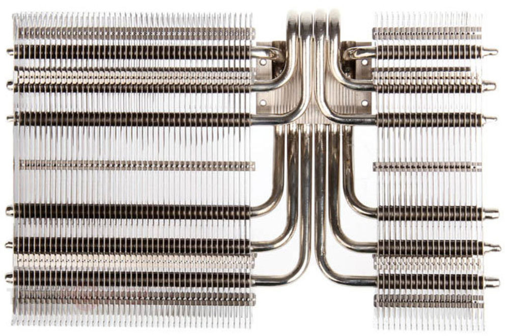 MK-26散热器采用6根6mm热管,两段式鳍片设计,并且全体镀镍,重量为590克。玩家可以选配两个120mm或者140mm风扇提供主动散热的需要。5/6