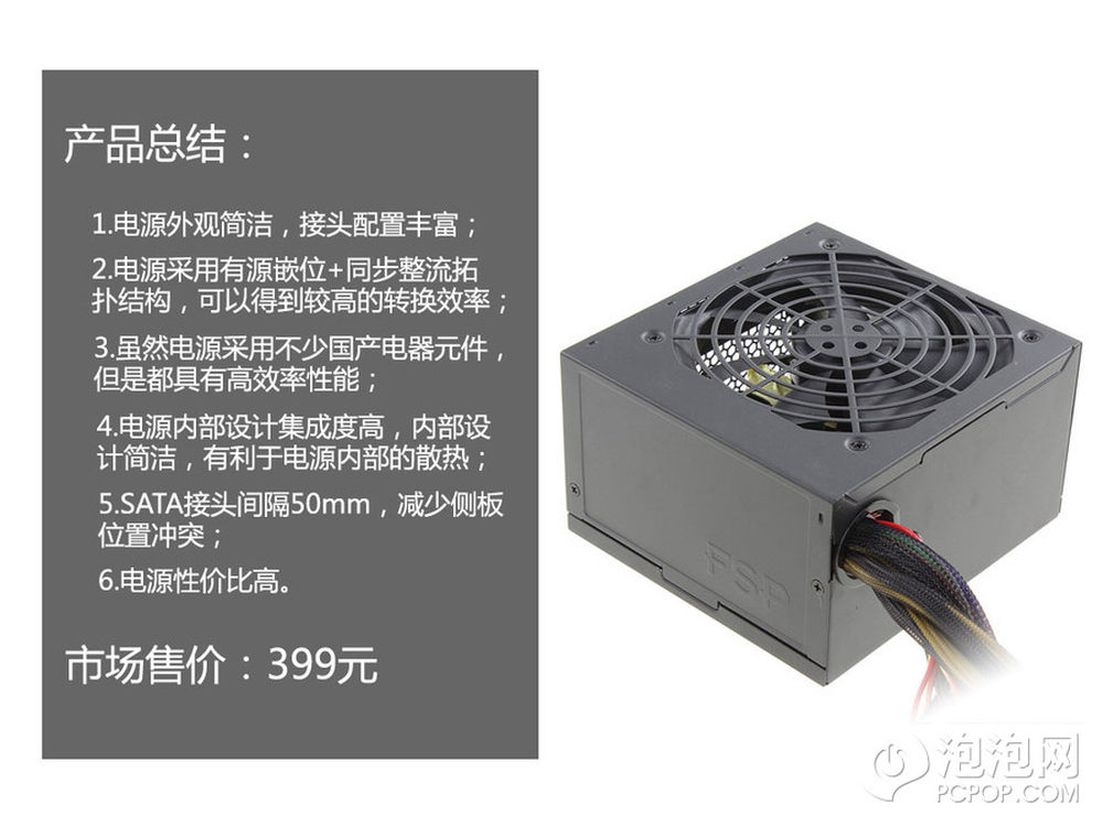 总结一下我们之前所说的内容。电源外观简洁,使用了罕见的有源嵌位拓扑结构,高集成度芯片,提高了电源的转换效率。清爽的内部空间,提高的电源的散热效果,降低了风扇的噪声。特别设计SATA线材也为理线提供了极大的便利。