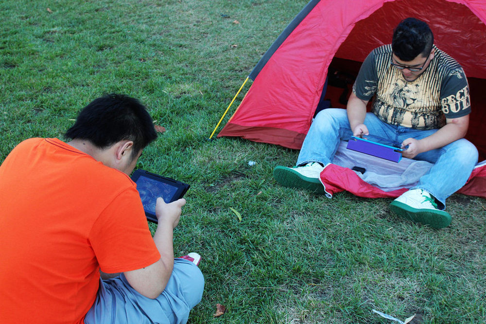 这样的草地宿营,经常伴随着活动而生,在活动开始之前,随车的两个宅男难免要拿出pad大玩而特玩,要知道一些3D游戏是非常费电的。10/14