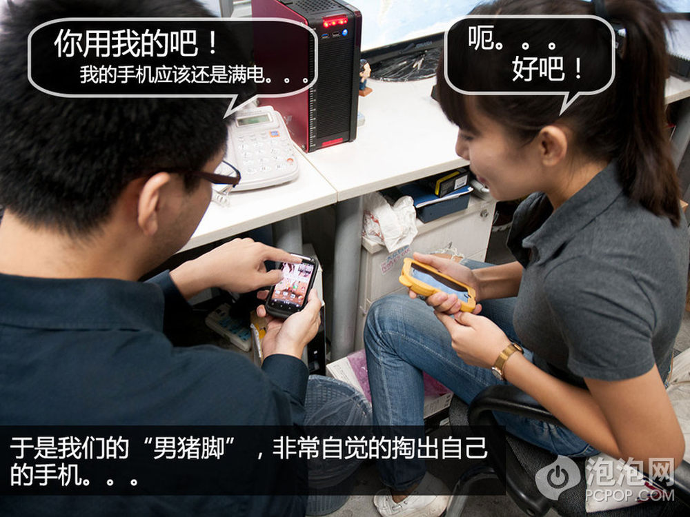 于是我们“男猪脚”掏出自己手机,欢喜的说,“用我的吧,满电的”。旁边的漂亮MM为了应急,也只好接过了手机。6/24