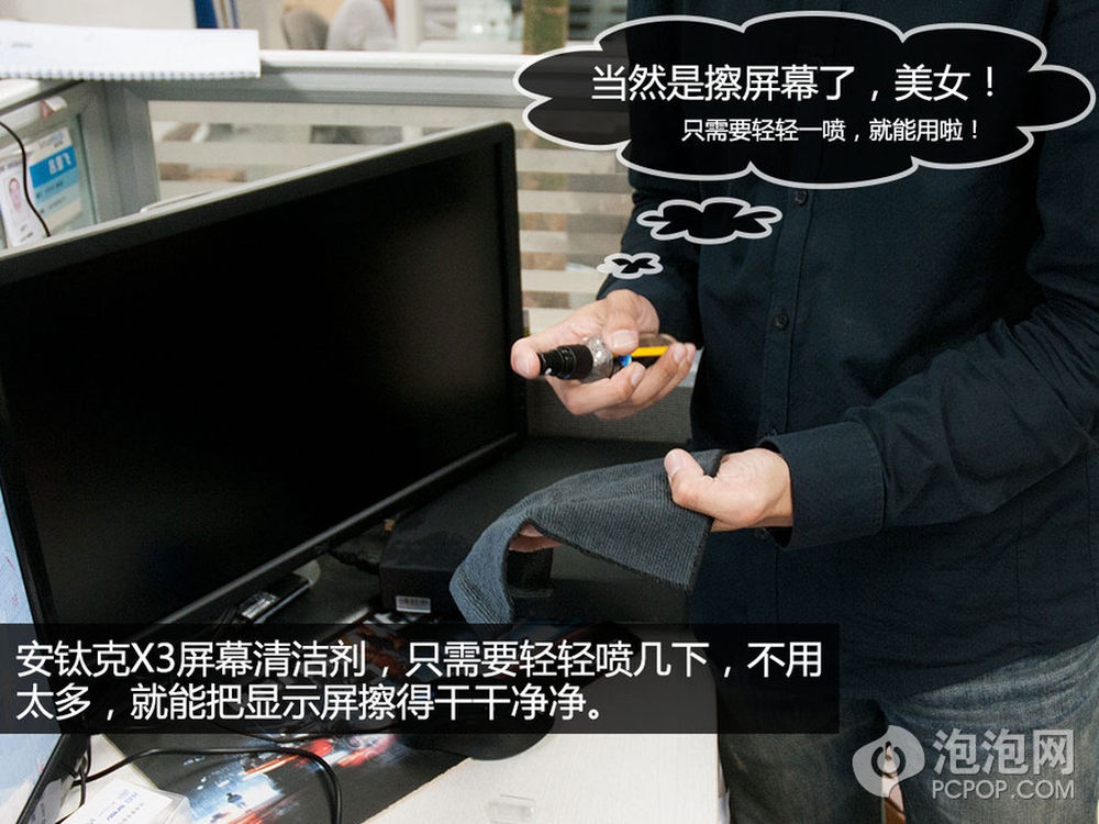 喷雾清洁液可以清洁,包括显示器,键盘、鼠标在内的绝对部分电脑周边产品,并且可以去油脂,而且不留指纹,这对一些爱干净女孩来说,实在是太受用了。16/24
