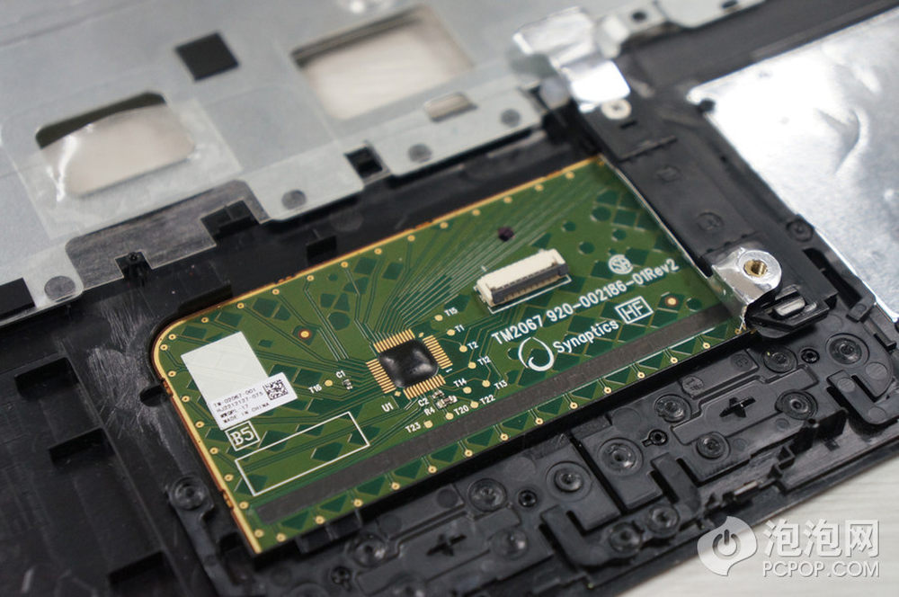 在C面面板的下方有独立的Synoptics触控板单元,通过排线与主板相连。14/31