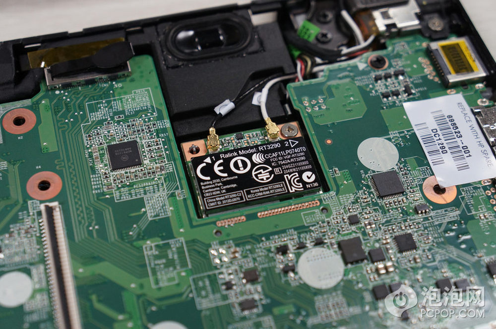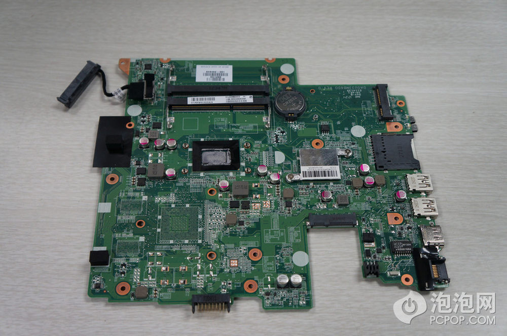 惠普Pavilion 14对PCB板设计也十分出色,我们可以看到,SMT元器件、排线接口的规划很合理。整体的PCB板显得非常整洁。