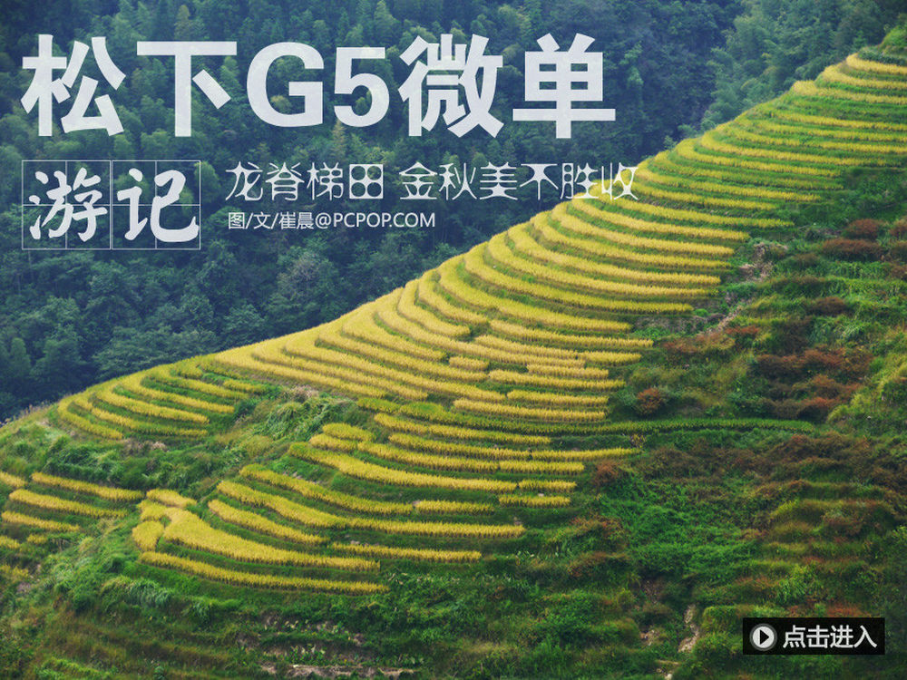 此次,我出游拍片的地点选择在了著名的风光摄影圣地,龙脊梯田。这里因独特的地貌特征而得名,一年四季在这里均可以拍到景色不一样的美丽风光照片。这回我不远万里,从北京搭乘28个小时火车到达这里,就是为了用松下G5帮助我记录下这里美丽的自然风光。同时,我也真正体会到了什么叫做轻装上阵,拿着微单出门拍照真是比以前用单反要强悍很多啊。闲话少絮,下面就和大家一起来分享一下我使用松下G5在龙脊梯田拍摄的金秋景色。