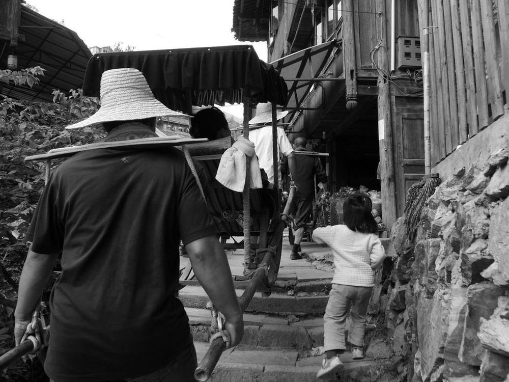在龙脊这里,对于那些偷懒的人则可以选择搭乘滑竿上山。9/21