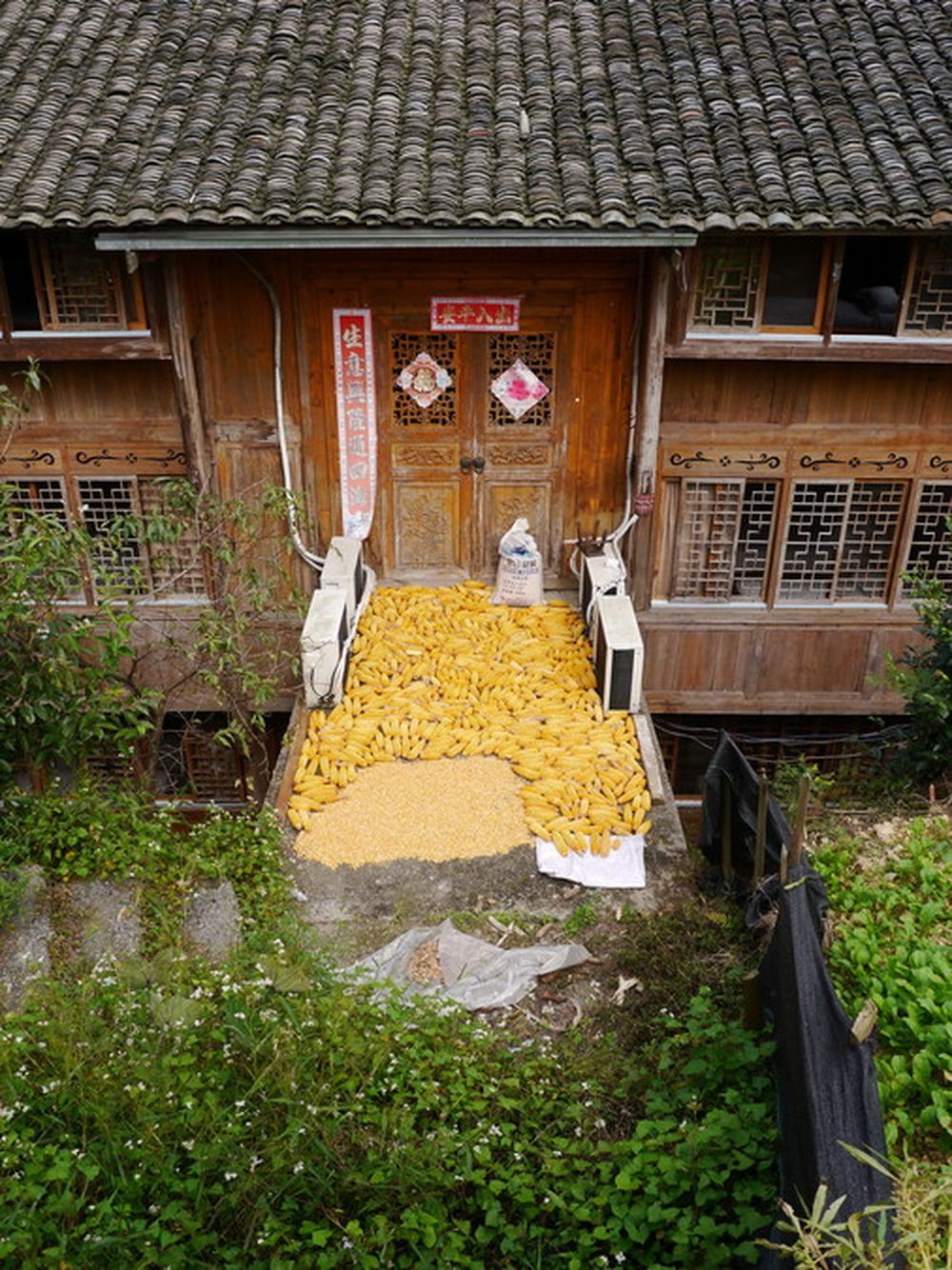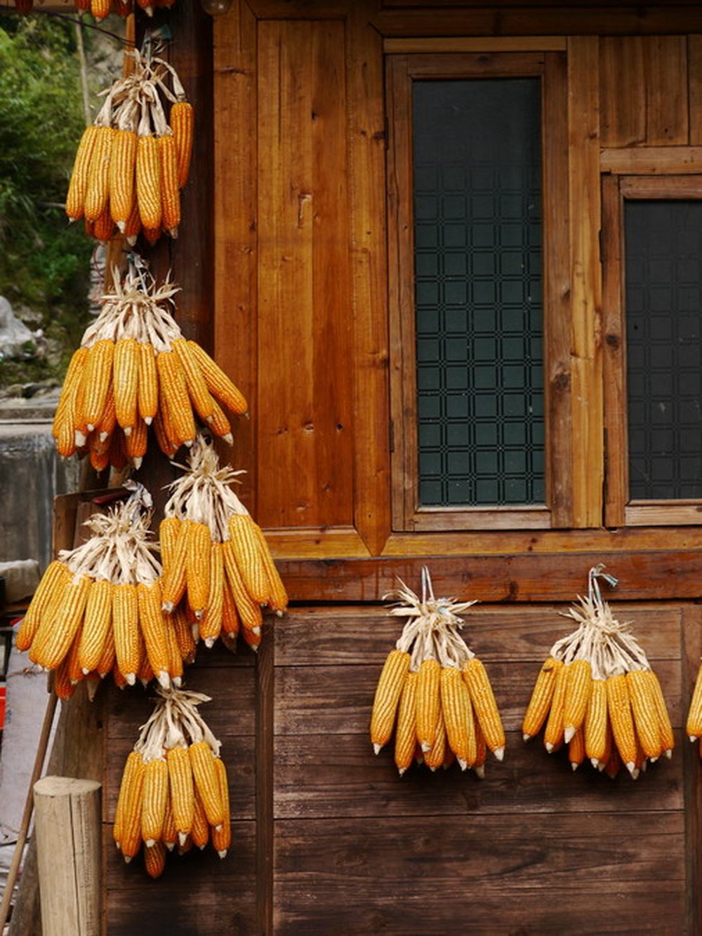 一串串金黄色的玉米被挂在了屋檐下,为此地增加了不少的乡土气息。14/21