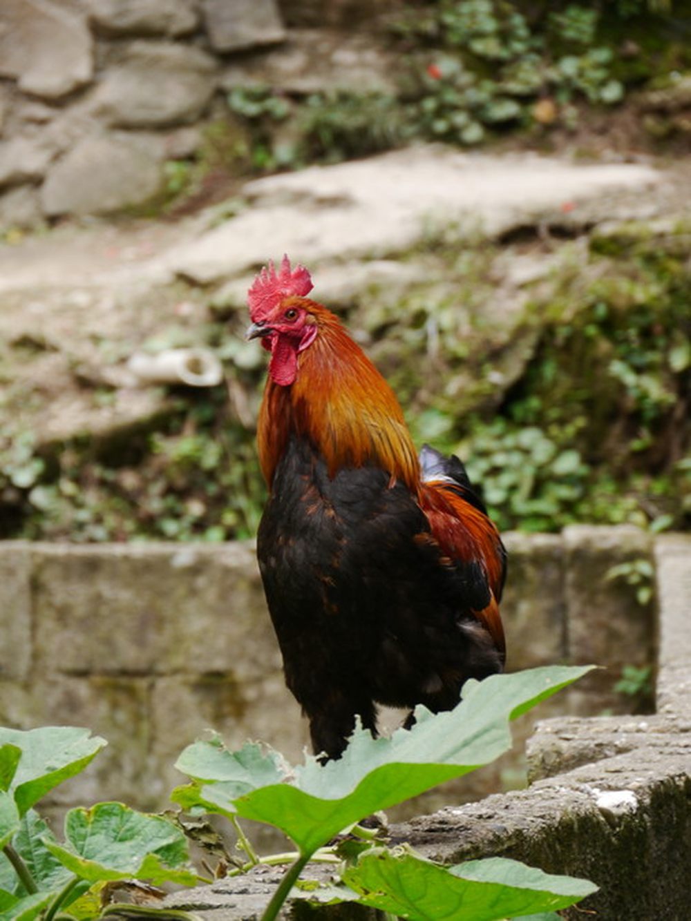 在这里大多户人家都会养家禽,所以我便在这里遇到了一只难得一见的大公鸡。上一次见到这样的情景还是我很小的时候。19/21