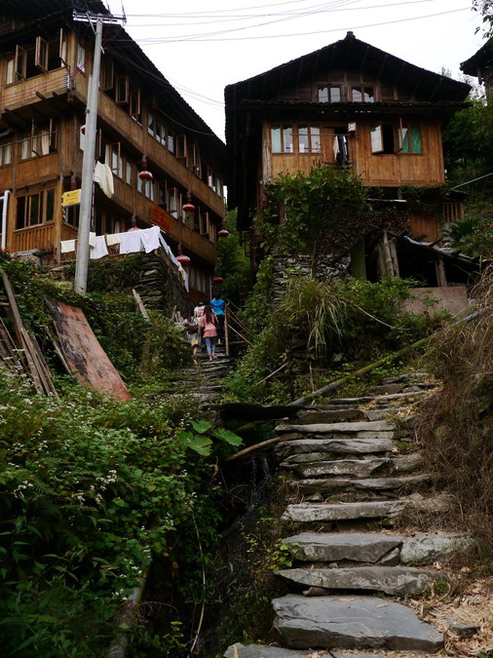 壮族特色建筑的房屋大量使用了木头,而且上山的台阶则使用了较为耐用的青石板。18/21
