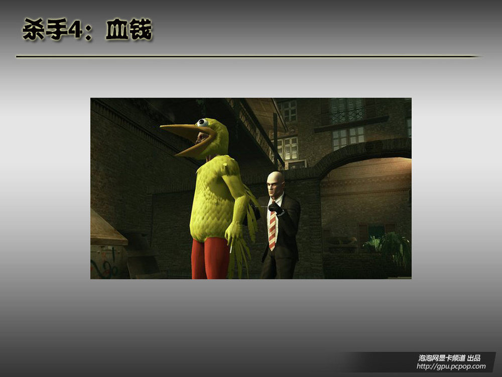 没办法,在杀手5出现之前,杀手系列想在这个榜单上提高还需要一定的努力。不过4代已经算是相当不错的作品了。较之前三款作品,《Blood Money》在玩法上有了新的突破,不光是“代号47”的角色定位有了重大转变,游戏的自由度以及动作成分都有了很大的改变,就连前三作对于杀手职业本能-“暗杀”真正意义上的定义没有执行到底,在新作中也以“恶名系统”真实的表现,下面就为玩家一一介绍。首先是我们熟悉的光头杀手“代号47”在新作中不仅是杀手,还是“被猎杀者”,似乎随着一款系列知名度的增加,制作小组就会想些新花样来吸引玩家,在《彩虹六号:锁定》(Rainbow Six: Lockdown)中也是如此,彩虹六号队员不再是“猎人”、“追捕者”,而是成为“猎物”,“被追杀者”,开始一场自救行动。6/11
