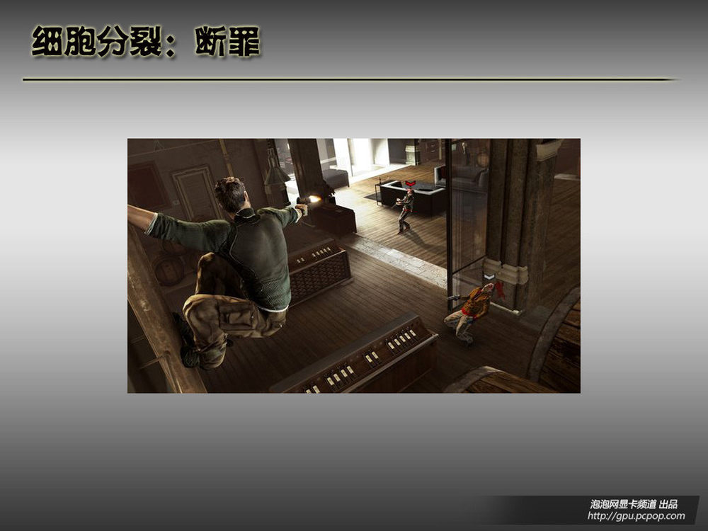 Ubisoft人气游戏《细胞分裂》系列最新作《细胞分裂:断罪》由Ubisoft公司蒙特利尔工作室开发。新作仍然支持联机模式。本作是系列的第五款作品,在积累了之前几作的经验后《细胞分裂:断罪》再次大放异彩。 本作游戏方式十分自由,游戏中的每件物品都有其物理属性,其中绝大多数都可以为山姆所用,你可以把身旁的各种家具投向敌人,甚至是把纸扔到敌人脸上遮挡视线。敌人的Al也设计的较为出色,能够利用桌子或者其他物品做掩护。《细胞分裂》系列自从前作《细胞分裂4:双重间谍》开始,在游戏中开始加入在光天化日之下的空旷场景中行动的部分,为隐秘作战和潜入增加了更多的挑战性和难度。7/11