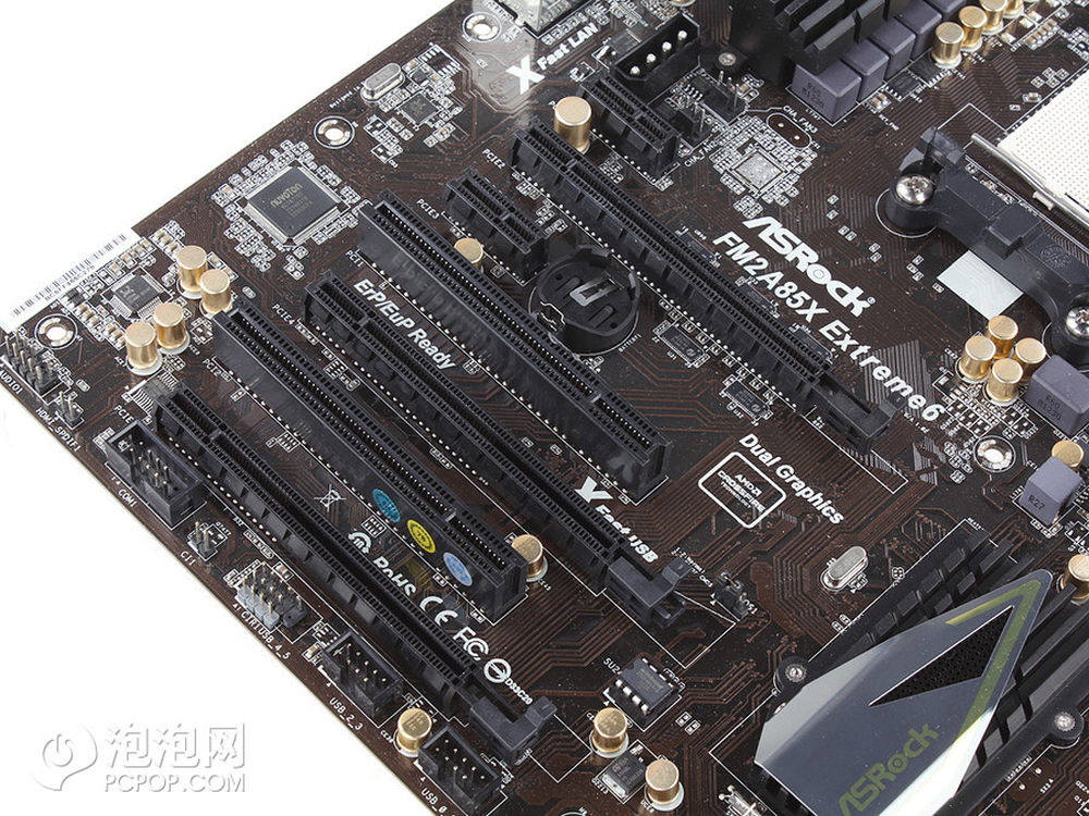 扩展方面华擎FM2A85X Extreme6主板提供了三根PCI-E插槽,推断可以支持组建x8 x8 x4的多显卡互联模式4/14