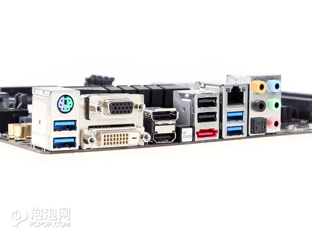 主板在背部I/O处提供了DVI-D HDMI DP D-Sub的视频输出接口组合。7/14