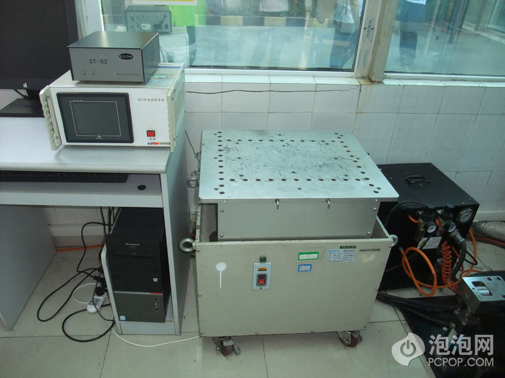 震动测试。这个机器可以模拟运输过程中的震动,加速度可以到2G,不是很高。