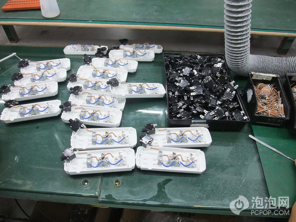 我们进入流水线车间时正好赶上员工间休,所以拍的不多。这是航嘉排插的生产线。45/51