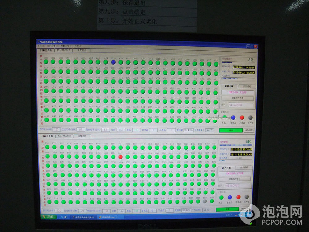 这里是老化过程中的报告,很巧,在这几百颗中有一颗关机了。我们还详细问了老化过程的费电问题,工程师介绍,今年航嘉已经引入了馈电系统,现在的情况下大约15%%的老化产品可以进行馈电回收能量,今后希望可以布局到100%%范围。49/51