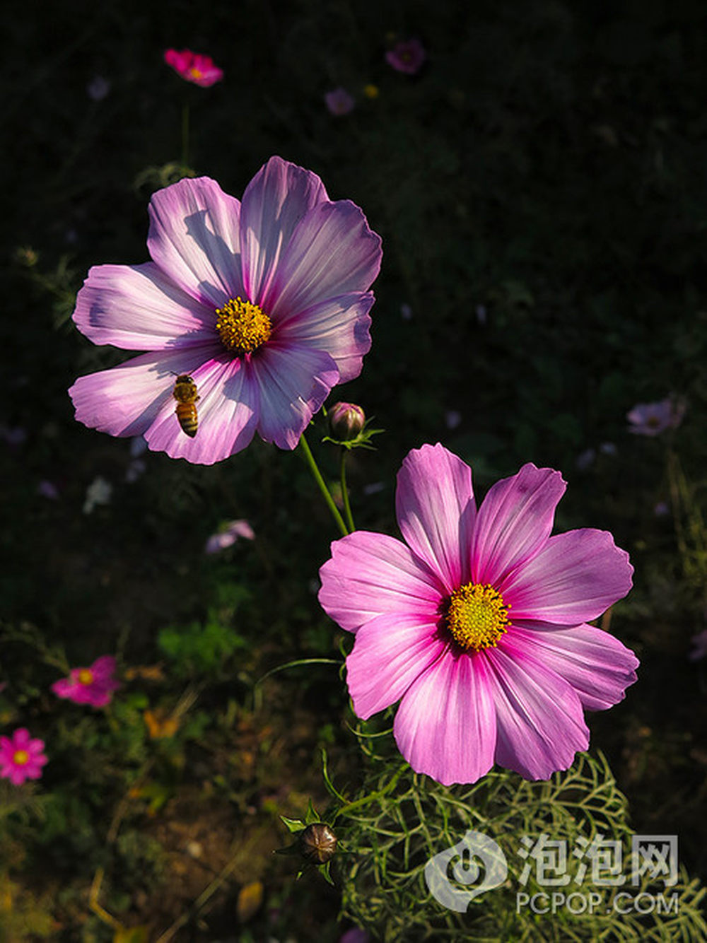 一只蜜蜂飞到波斯菊上准备采蜜。10/22