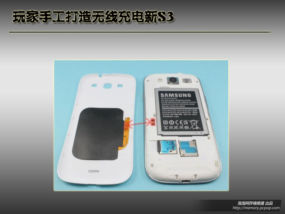 在三星还没有正式表态会在什么时候推出标准配备的无线充电模块之前,有玩家开始用其改造之后的s3手机搭配palm的touchstone无线充电器进行搭配测试。