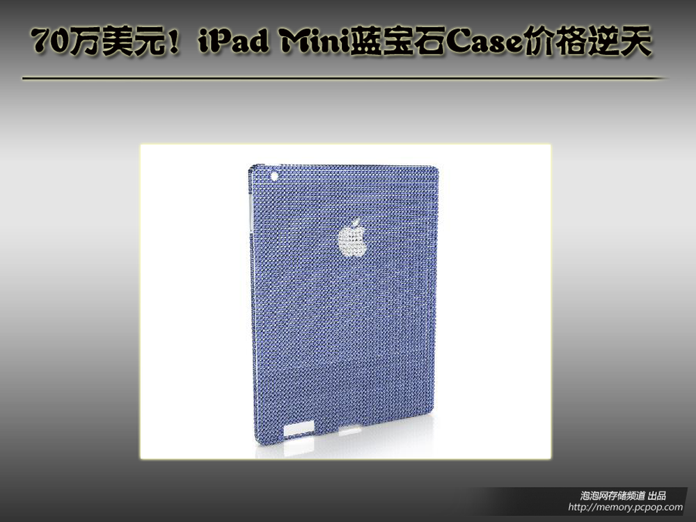 这里有一款适用于iPad Mini的蓝宝石外壳,它由3328颗18K蓝宝石组成,并有50颗钻石拼出了苹果的Logo,重量足足达到了5克拉,说道这里恐怕各位都对这款产品的价格很感兴趣,其价格高达700000美元,约合人民币430万,这个价格可以在江宁买套别墅,甚至可以买下一辆阿斯顿马丁,可事实是一个iPad Mini的Case也能卖到这个价。