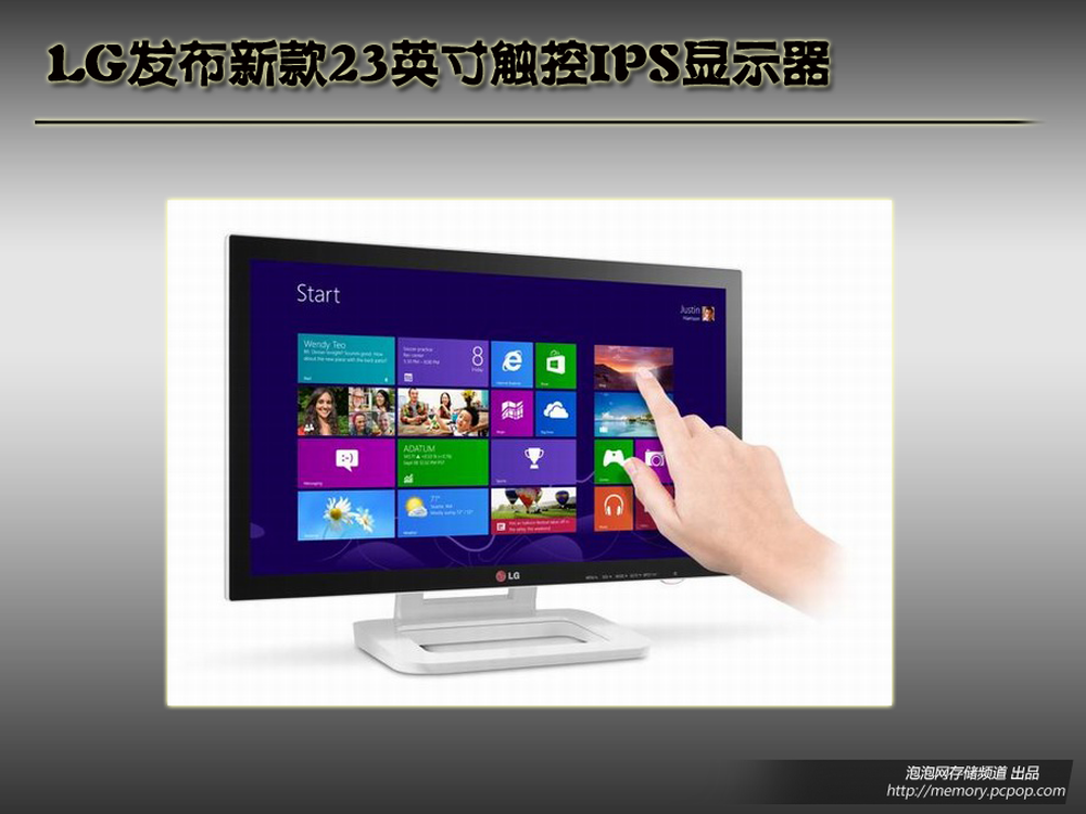 LG日前发布了一款23英寸IPS显示器,型号为Touch 10,支持多点触控操作,与当前的Windows 8操作系统完美匹配,将在年底前发售。