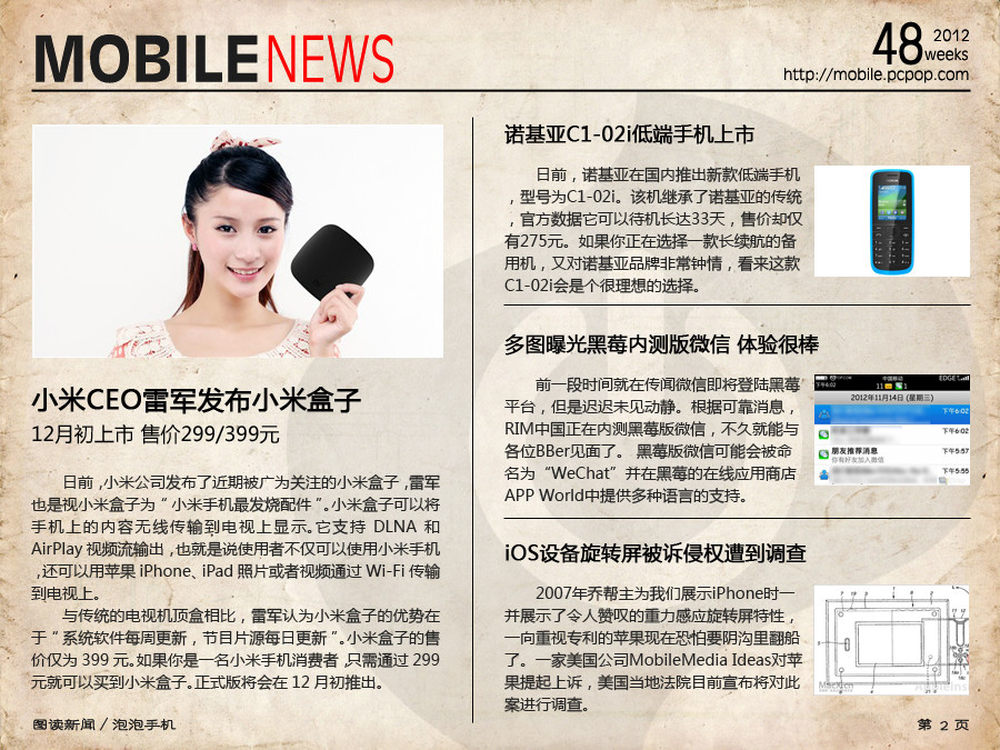 各位泡泡网友大家好,我们将采用图片新闻方式为大家带来《一周热门手机新闻回顾》。从这篇图赏当中,你可以看到在过去的一周手机行业发生了哪些值得关注的新闻事件。希望各位网友在观看图赏的同时,给我们提出有力的评价,我们将会采纳大家的建议,在日后每期的内容中创造更好的效果,带来更精彩的新闻内容。这篇内容主要有魅族MX2将会在本月27日亮相,小米盒子正式发布等等。更多内容,可以从图片中找到。2/6
