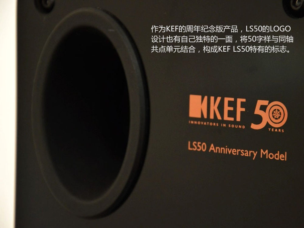 既然是周年纪念版就要有一些特别的地方,KEF LS50的LOGO设计上加入了50周年的字样,并与音响华丽的外观结合,构成周年纪念版的特殊LOGO,让发烧友对其印象颇深。8/15