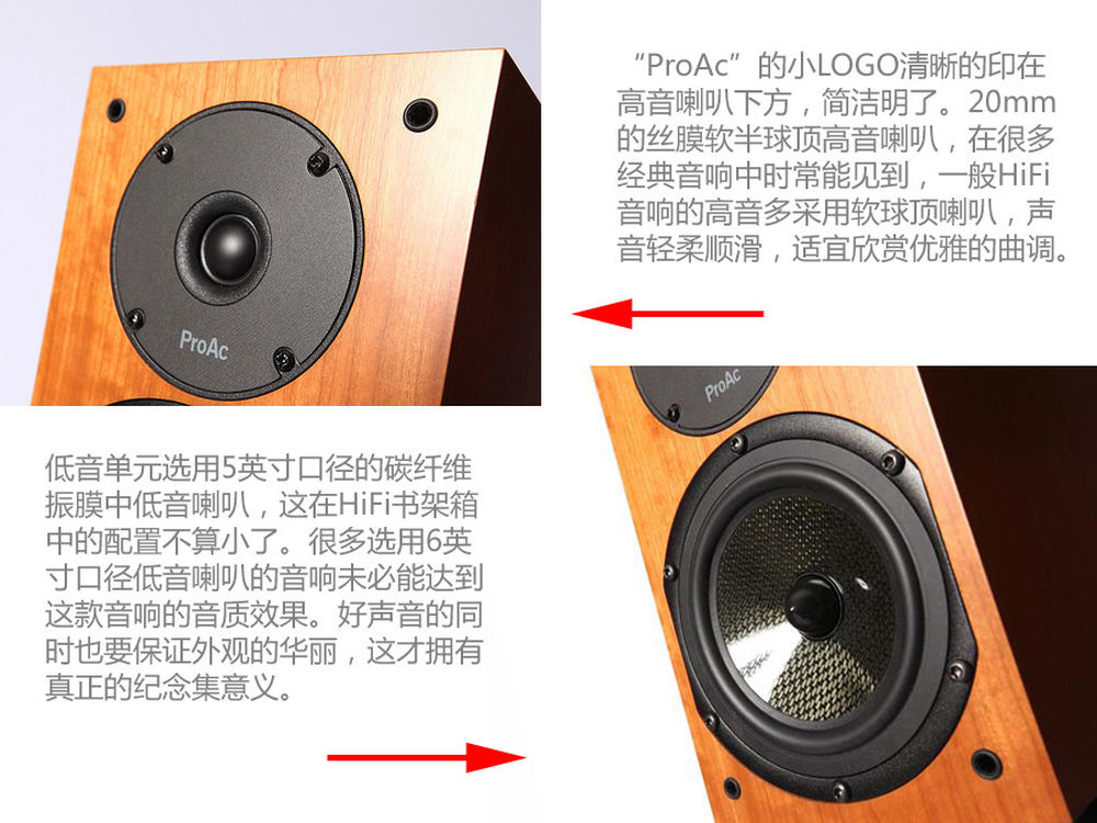 很多传统HiFi音响前板的单元布局上下一般都是对称的,中心保持在一条竖线上,而ProAc80周年纪念版则不同,高音喇叭的布局偏向一侧,由此区别与其他款式。尽管初看有些不习惯,但听过声音之后,对于单元的布局也不会那么在乎了。14/15