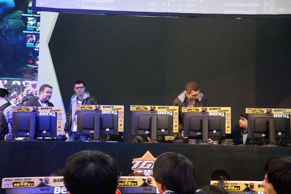 TGC 2012 LOL表演赛开始前,2012IEM6世界总决赛冠军M5.BenQ战队正在紧张的准备中。4/29