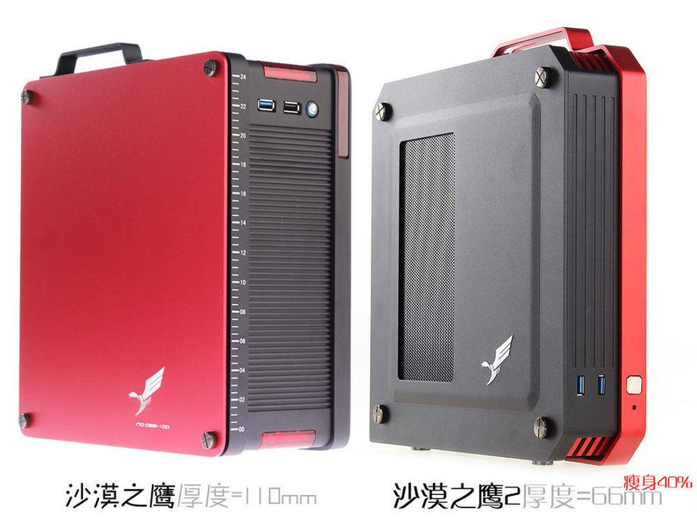 虽然人不可貌相,不过一个机箱的外观绝对是我们所最先了解的。两款机箱在色调上比较相近,不过差异则是更加时尚的不对称造型风格以及更为纤薄的腰身,这一切都离不开沙漠之鹰设计者的精雕细琢。3/11