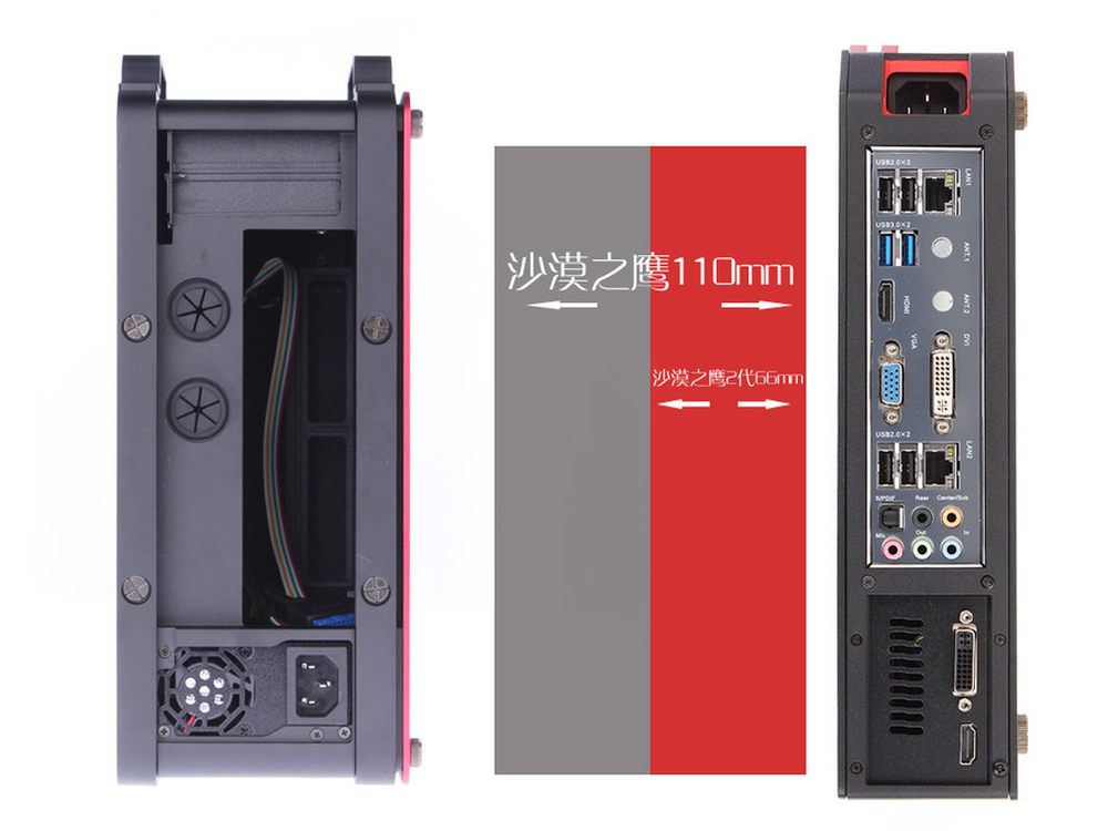 很明显沙漠之鹰2是一款非常厚道的续作,它的结构全部重新设计,由原来的主板、显卡倒置RTX布局恢复为主板正装结构,而通过显卡90?转接结构、超薄FLEX-ATX服务器电源与SSD垂直分布的布局让它可以近一步减小机箱的尺寸。8/11