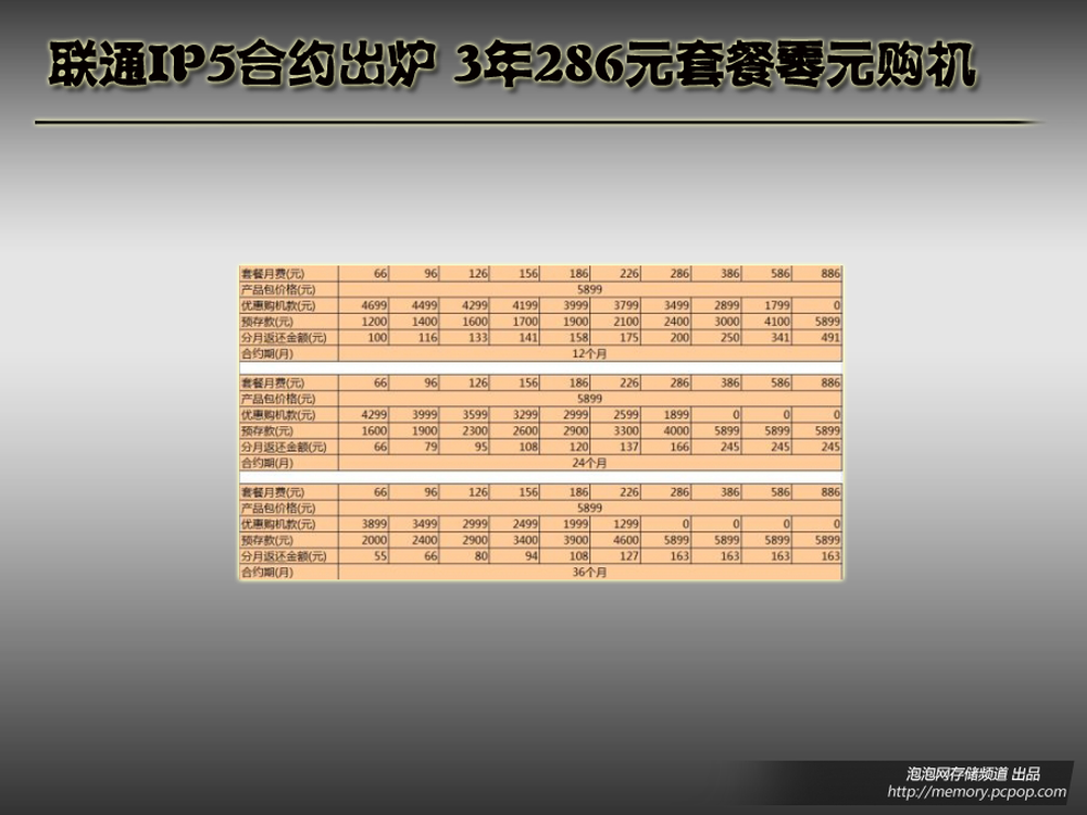 中国联通iPhone5的合约计划提供“存费送机”合约计划和“购机送费”合约计划两种补贴政策。