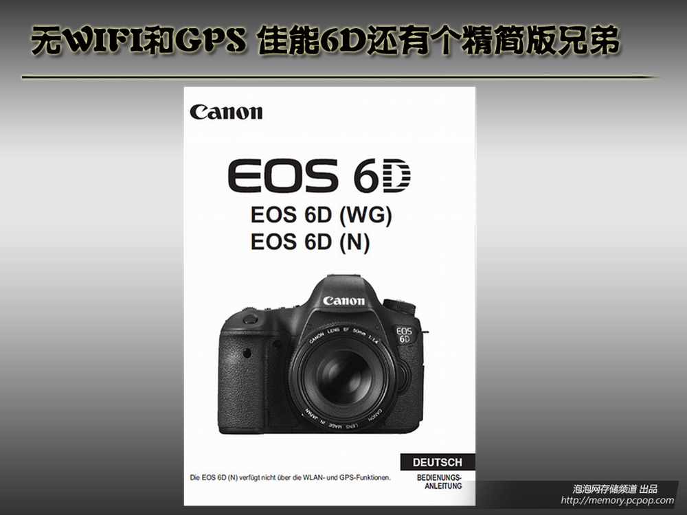目前来看,EOS 6D的套机价格并不算便宜,也让之前持币观望的佳能粉丝失望不已;不过日前网上爆出德国市场出现了不带WIFI和GPS模块的精简版EOS 6D,当然了价格略有下调。也就是说佳能EOS 6D产品线上应该有两款产品,而目前国内也仅有EOS 6D(WG)这一款。