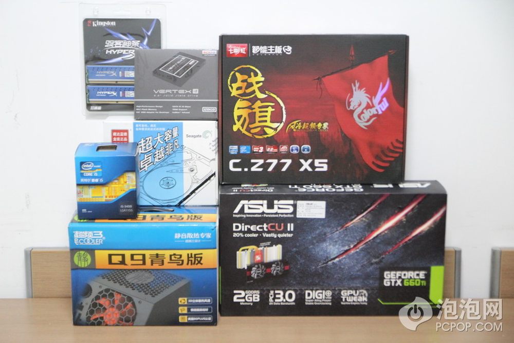 这台主机用的到主要配件有:酷睿i5 3450处理器、金士顿4GB 1600神条(两根)、OCZ 128G SSD、希捷2TB硬盘,七彩虹战旗Z77 X5主板以及华硕的GTX660TI显卡、电源用的是超频三的Q7青鸟。下面大致来看下这些配件。3/25