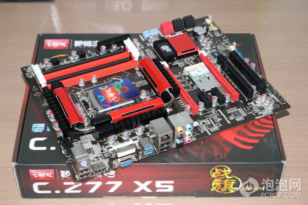七彩虹战旗C.Z77 X5 V20 主板基于Intel最新的Z77单芯片设计,支持LGA1155接口的第二/三代智能酷睿处理器(Sandy Bridge以及Ivy Bridge处理器)。主板提供了VGA DVI HDMI全高清视频输出接口,并且支持USB3.0 SATA3.0 PCI-E 3.0规范。提供4条标准DDR3 2400(OC)内存插槽,方便用户组建16G或者更大内存容量的平台。主板标配无线网卡,方便用户组建家庭无线局域网络, 摆脱了网线的束缚。4/25