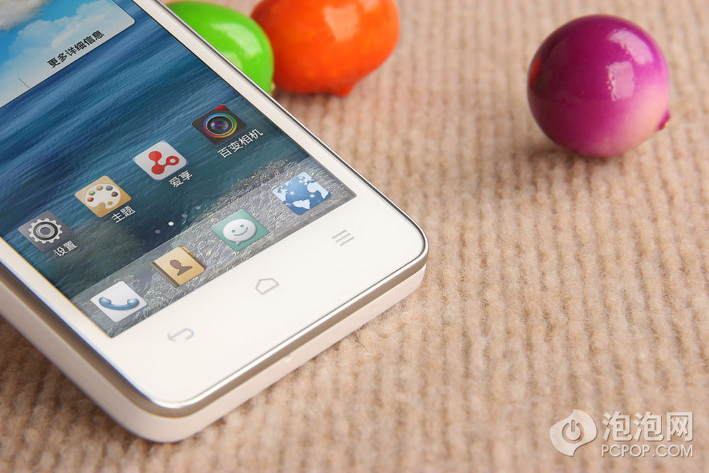 华为荣耀四核爱享纯真版手机采用三枚背光式Android触控按键,分别是返回键、主页键和菜单键。4/13